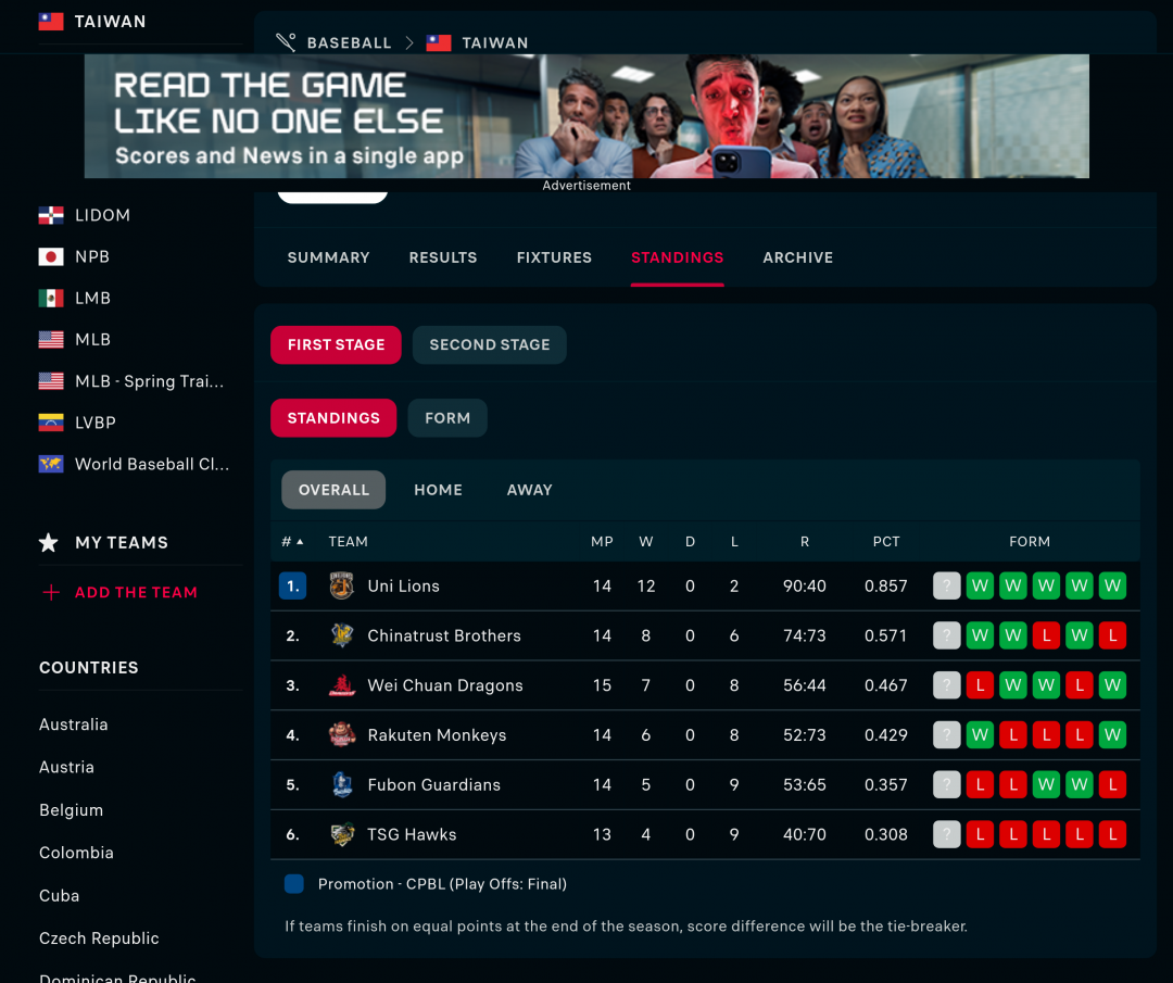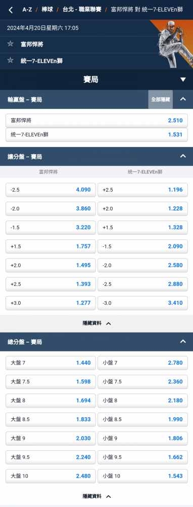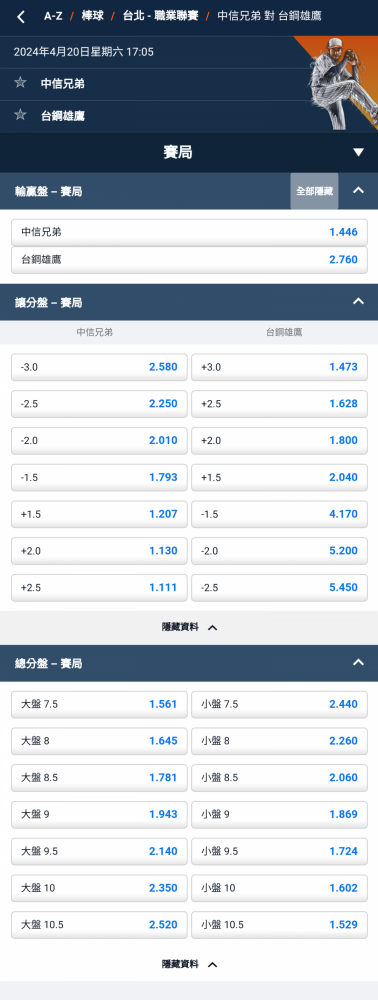 >> 2024年04月20日 中華職棒聯盟: 一獅•二象•三龍•四猿•五將•六鷹