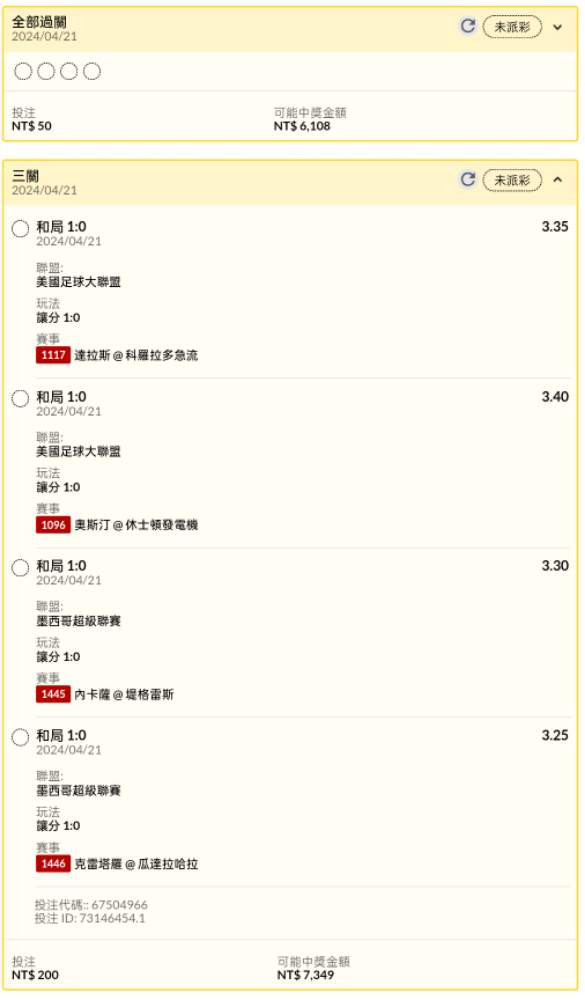 >> 足球早場讓分串關分享1單