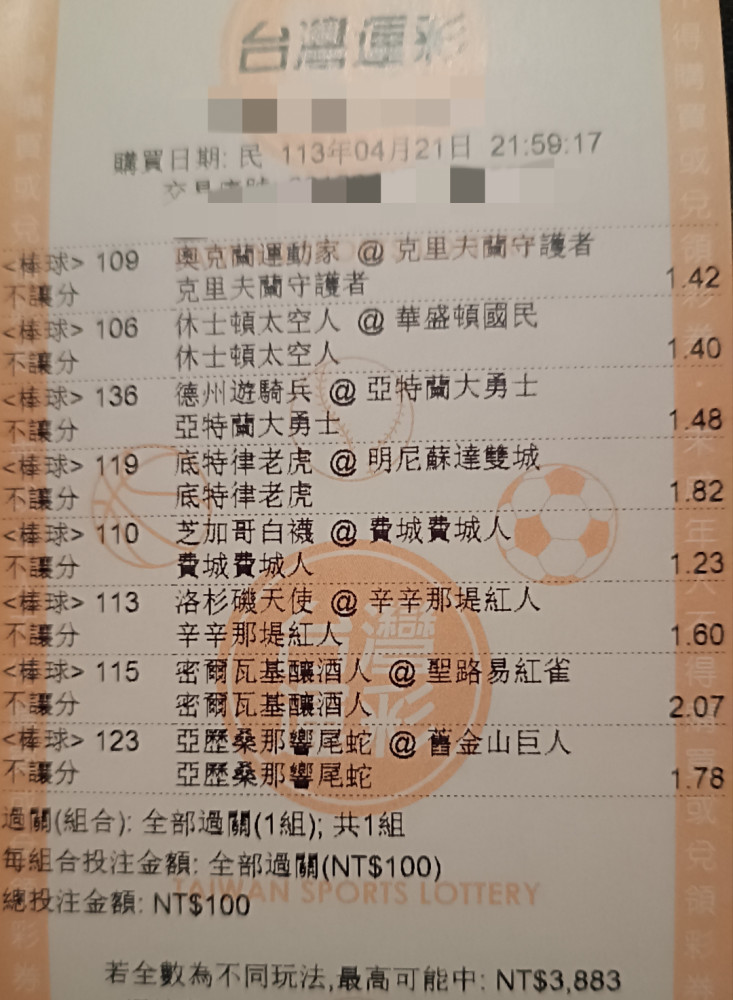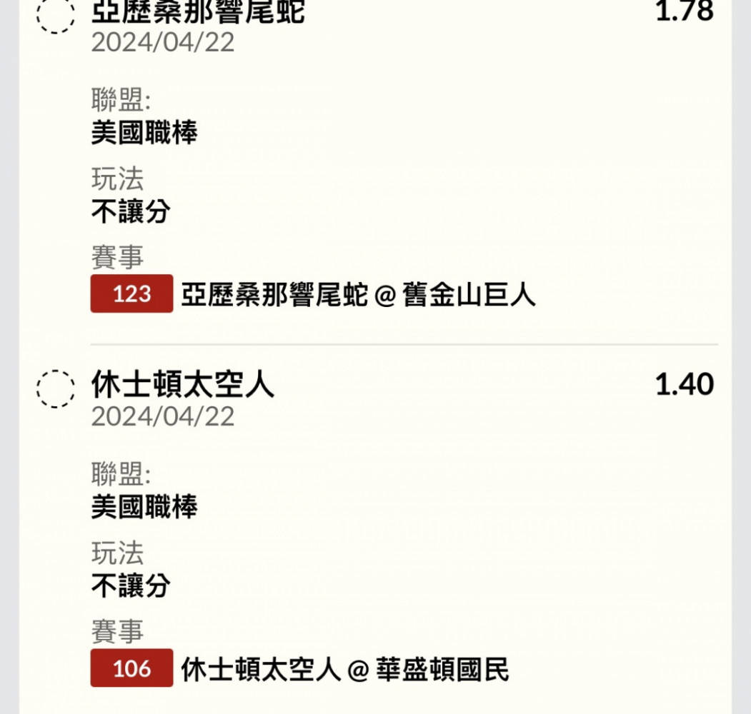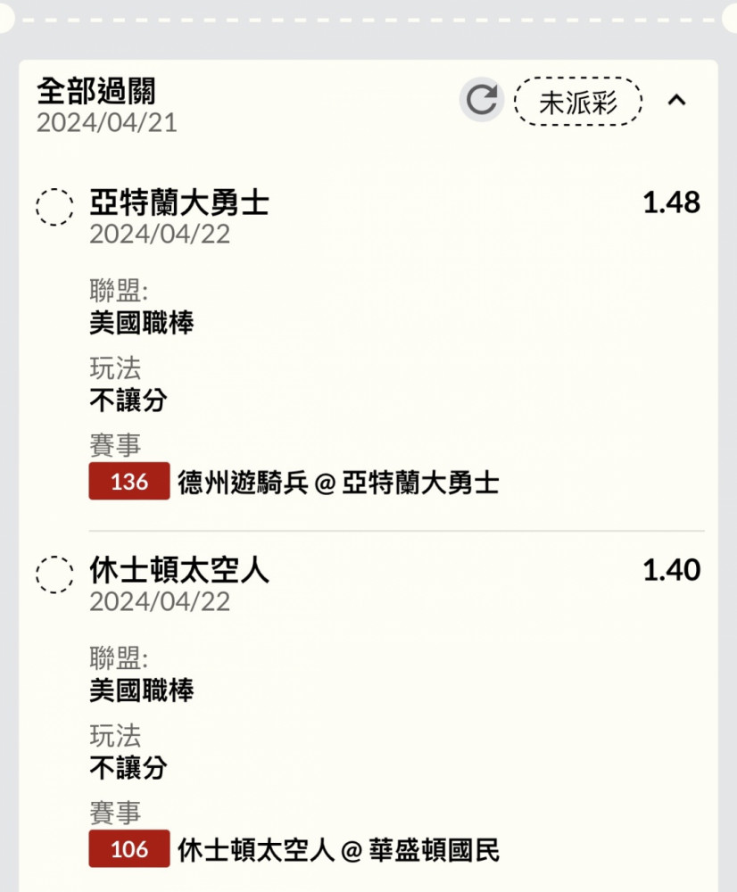 MLB >> 亮單4/22ㄧ單保守、一單樂透單