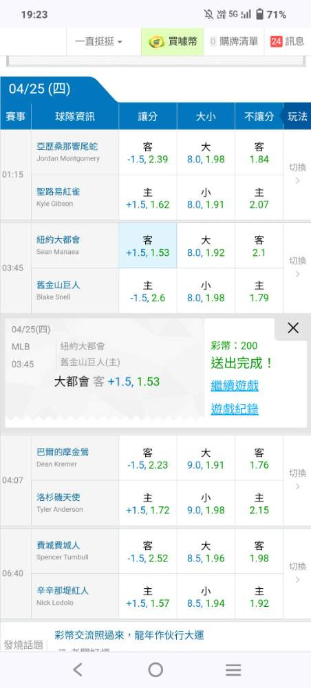 MLB >> 國際主推連過2天明天主推信心高邀請朋友們繼續上車一起殺豬頭領錢爽歪歪!
