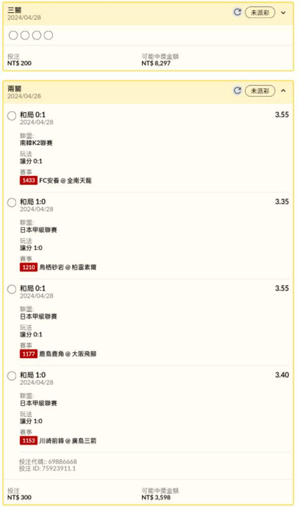 >> 足球日韓場串關分享2單