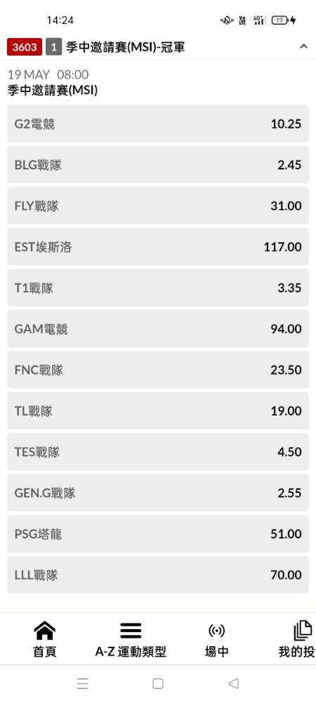 ,左大希望BLG能冠軍 昨天買400,全收的話1635元(剩下最後一關LOL BLG奪冠)