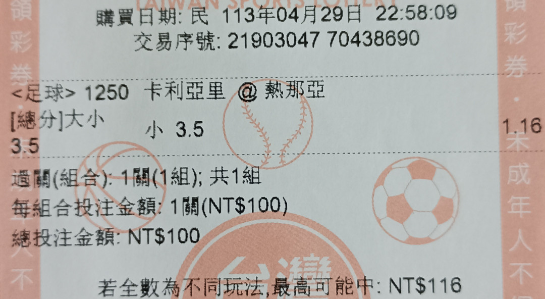 >> 義甲 單場 總分小於3.5