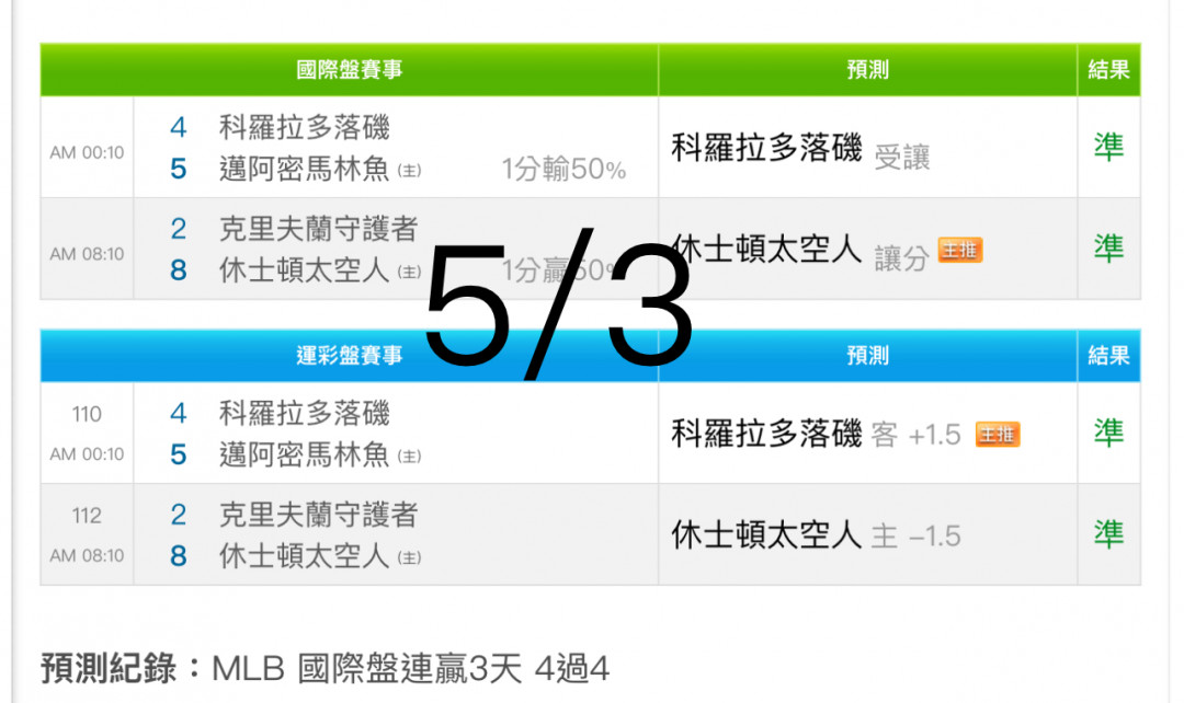 MLB >> [主推4連勝][單場 凌晨2點 釀酒小熊][主推100%🎊勝率百分百][單場9:00 勇士道奇]