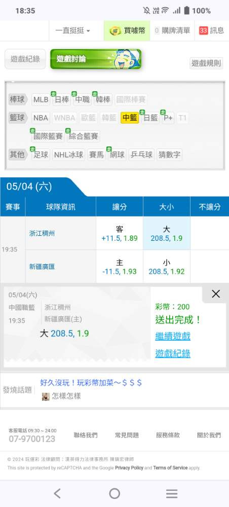 中國職籃 >> 運彩大小近24日35過22五月3日雙盤4過4今晚特價一注絕殺豬頭領錢爽歪歪!