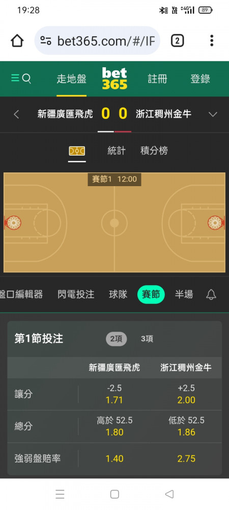>> 新疆vs浙江 第一節 52.5 53.5大