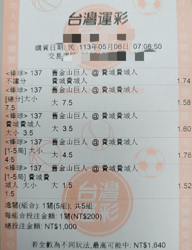 今天早上的費城人還好有對方的失誤和哈波的三分全壘打,讓我順利的單場過五關,花一千小賺六百