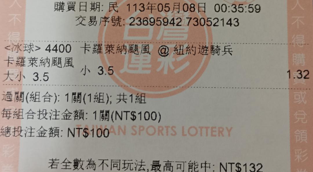 >> 季後賽8強 G2卡羅萊納颶風小於3.5