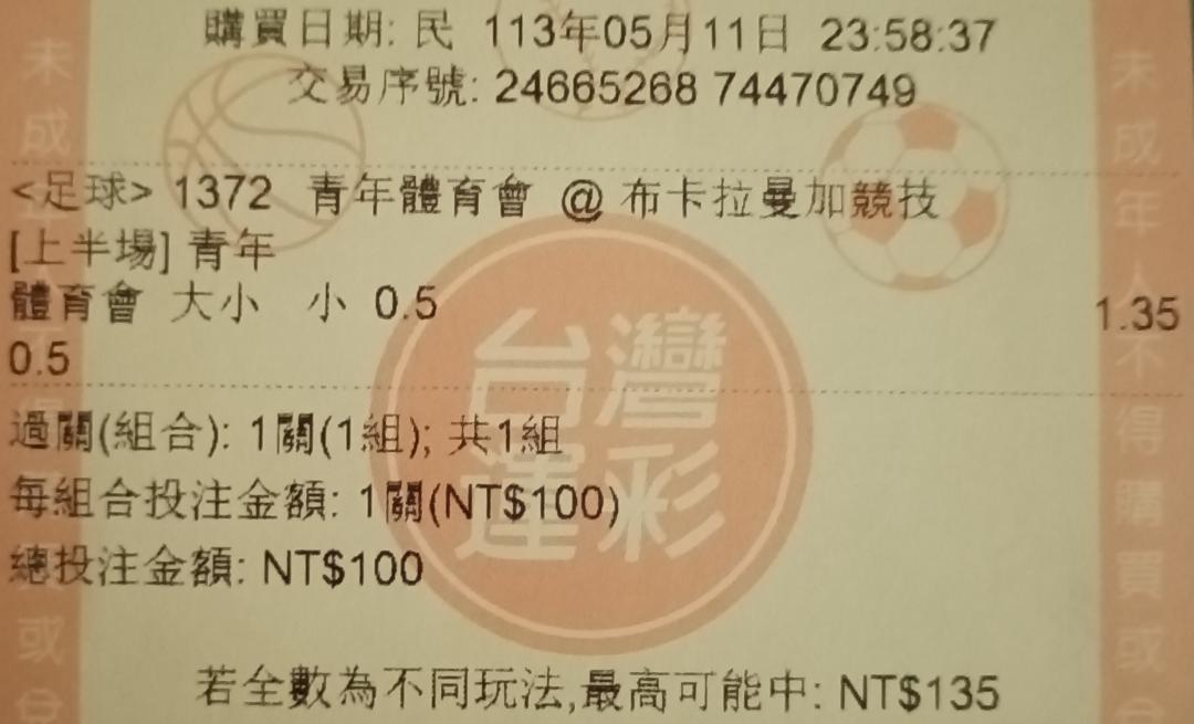 足球 >> 哥甲 青年體育會 上半場小於0.5