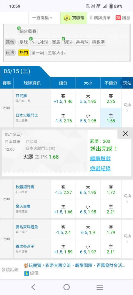 日本職棒 >> 國際連贏二天9過7五月十四日5過4邀請朋友們上車一起殺豬頭領錢爽歪歪!