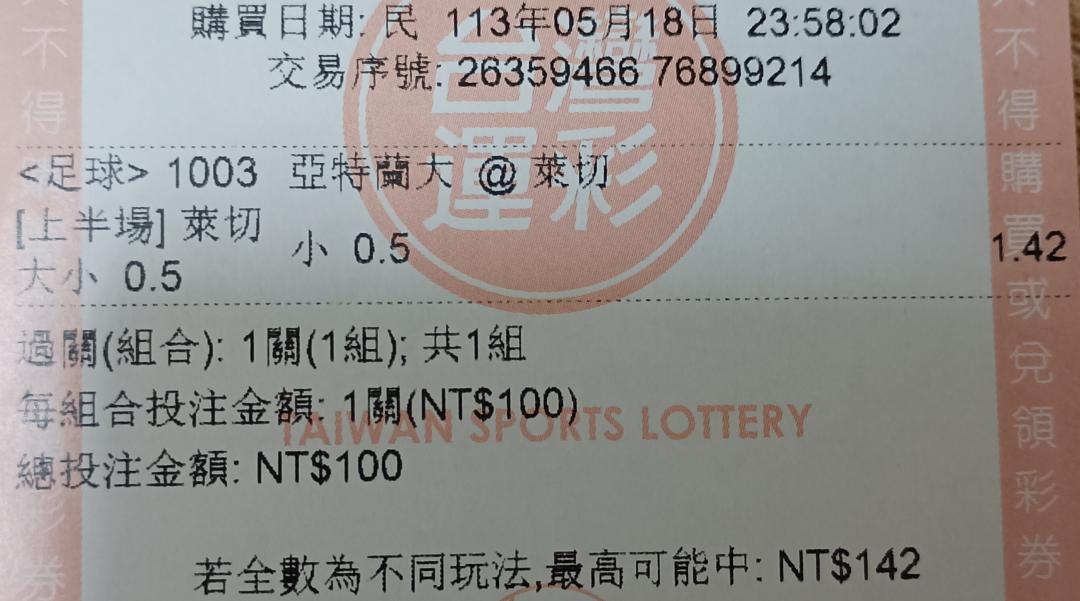 >> 義甲 萊切 上半場小於0.5