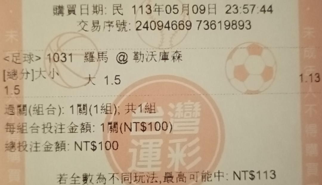 >> 義甲 單場 總分大於1.5(5/9)