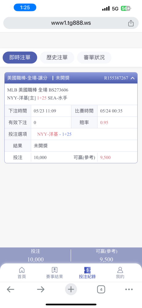沒意外低比分投手戰,等獨贏開出來賠率有0.8可以再補 |