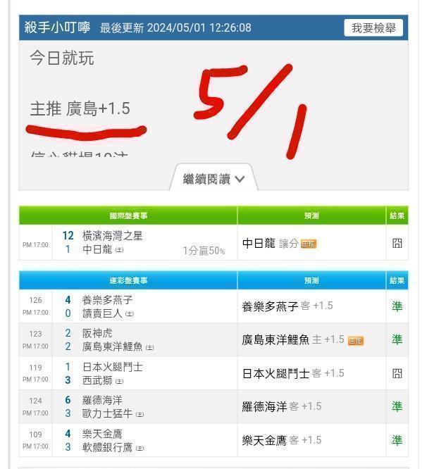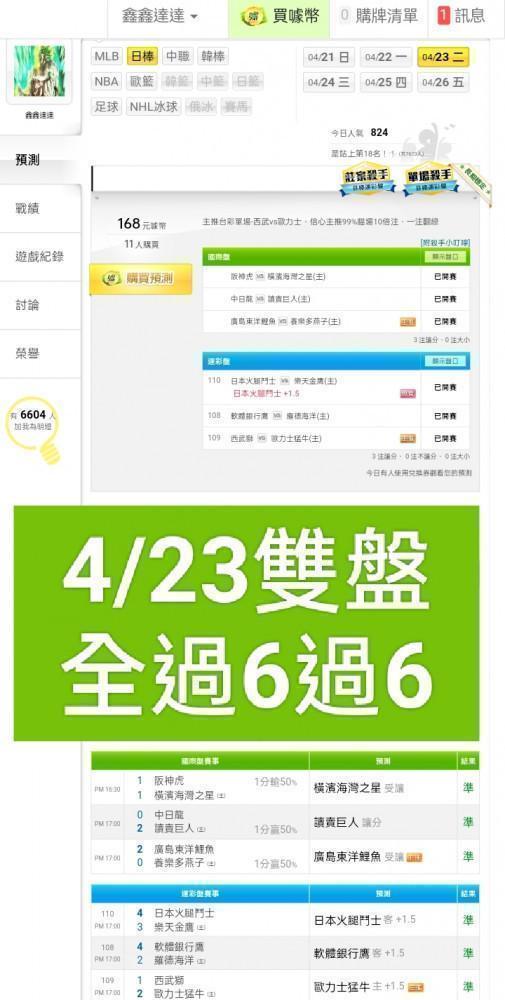 日本職棒 >> ⭐上次3過2,主推連過3天,主推台彩單場-羅德vs多多,信心主推99%貓場10注,一注翻綠⭐