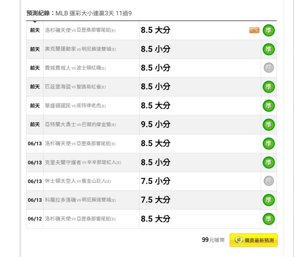 MLB >> 大小連贏3天11過9~明天看好2場雙主推一擊必殺