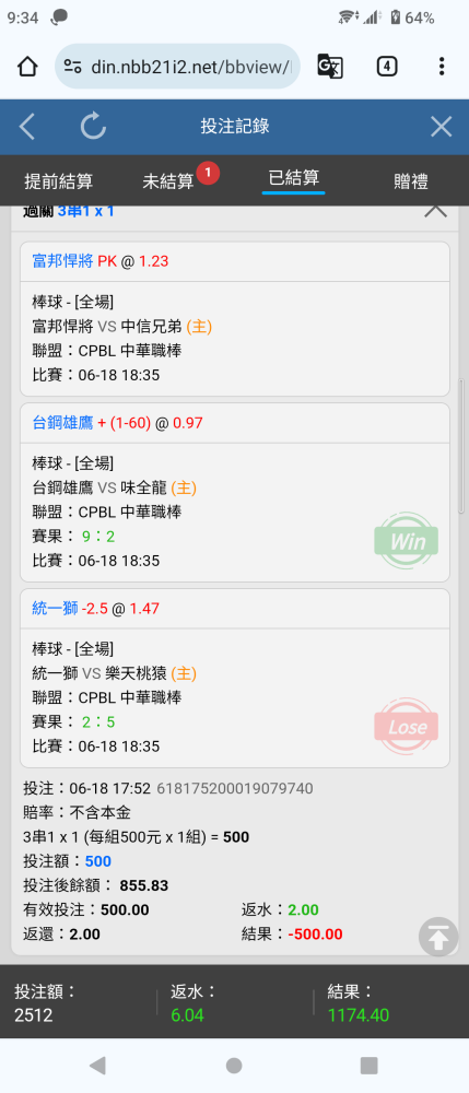 中華職棒 >> 6/18台棒