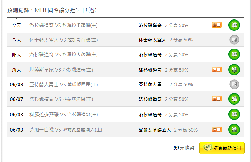 MLB >> 6/20MLB國際讓分近6日8過6 今天雙主推都過 本月主推勝率83%單場洋基PK贏2分勝分差都過