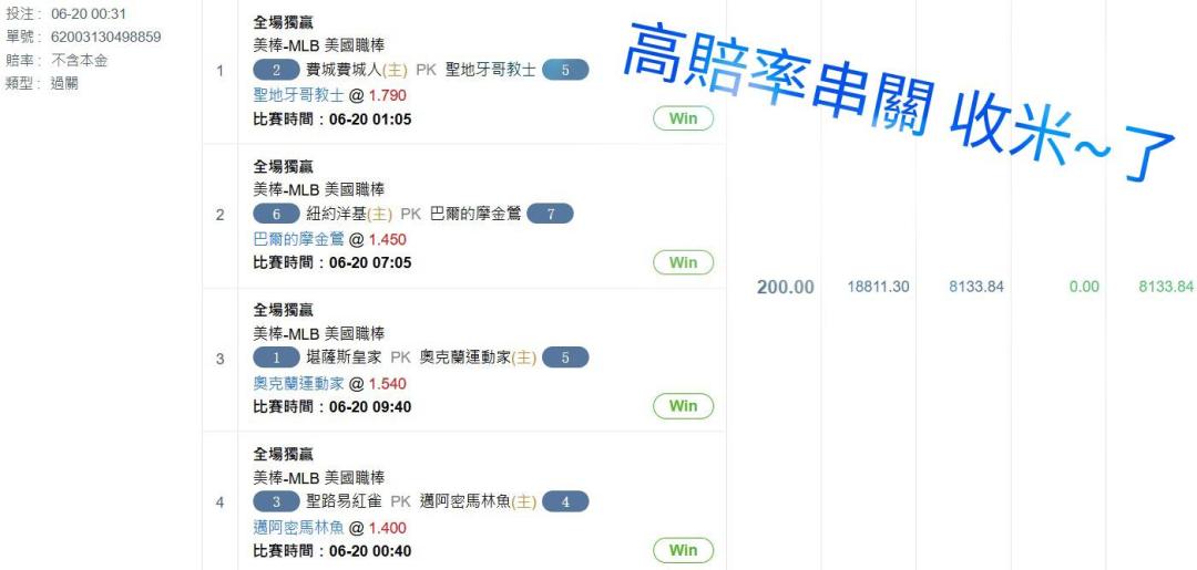 MLB >> 果然大富翁 今日免費分享 連2天串關收米 近況極佳 一起收~米了