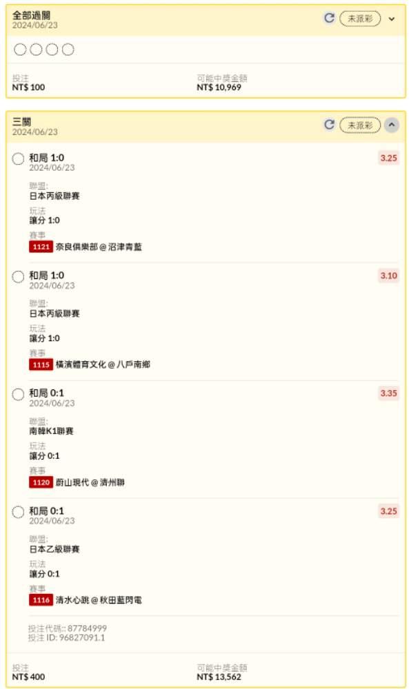 足球 >> 日韓場讓分串關分享1單