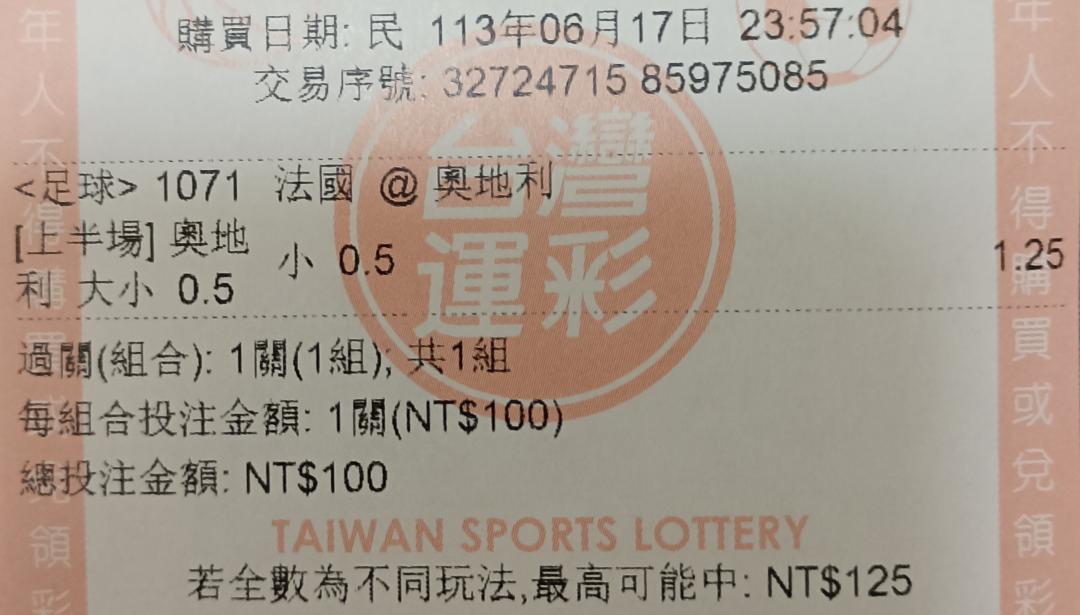 >> 歐國盃 奧地利 上半場小於0.5(6/18)
