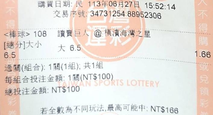 日本職棒 >> 單場 總分大於6.5(6/27)