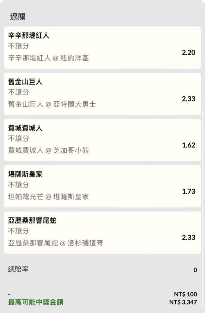 MLB >> 5串1