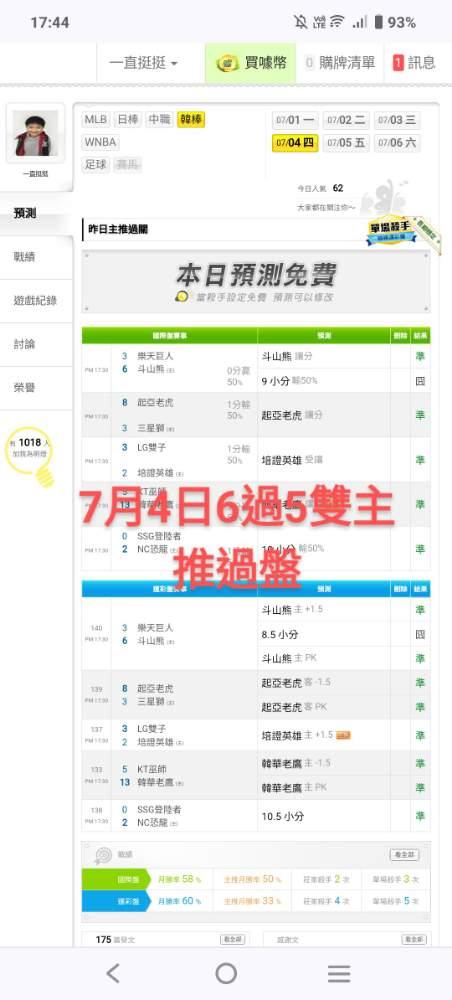 韓國職棒 >> 今天預測兩支喜歡跟上!