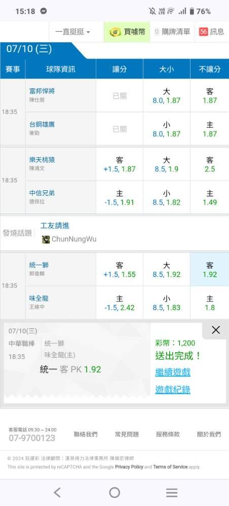中華職棒 >> 今天玩富邦與台鋼場喜歡跟上!