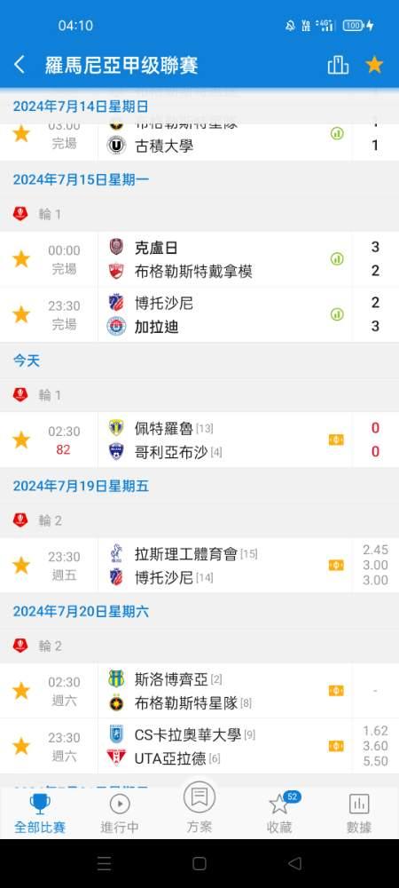 足球 >> 7/16 羅馬尼亞超級聯賽 讓球0.5