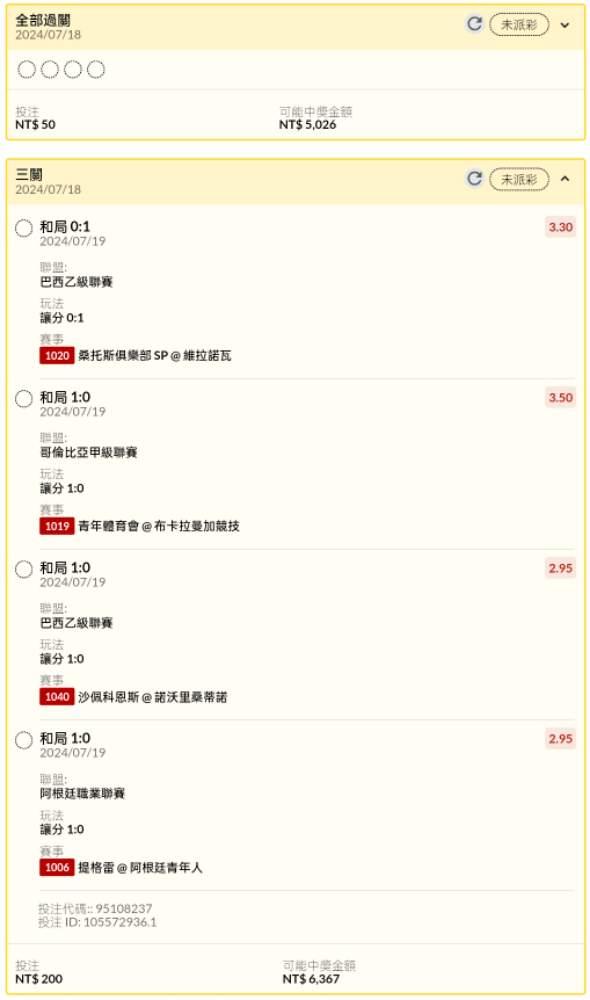 足球 >> 足球清晨早場讓分試單串關分享2單(4場賽事)