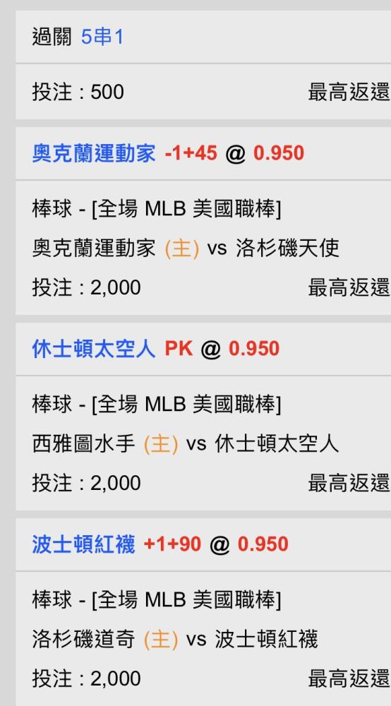 3.過五關:守護者、小熊、運動家、太空人、紅襪