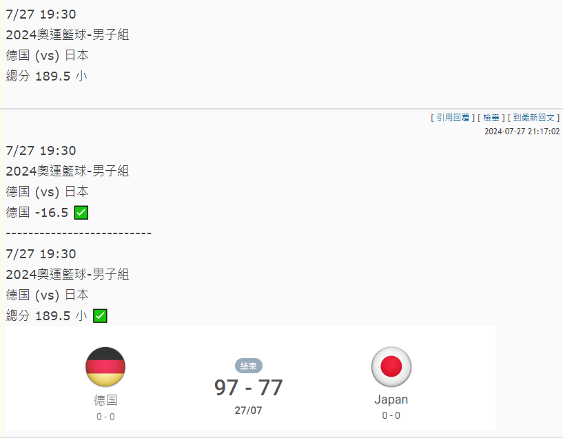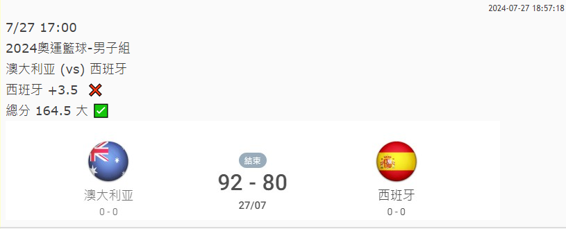 𝟮𝟬𝟮𝟰奧運 7/27 23:15 2024奧運籃球-男子組 法国 (vs) 巴西 法国 -9.5