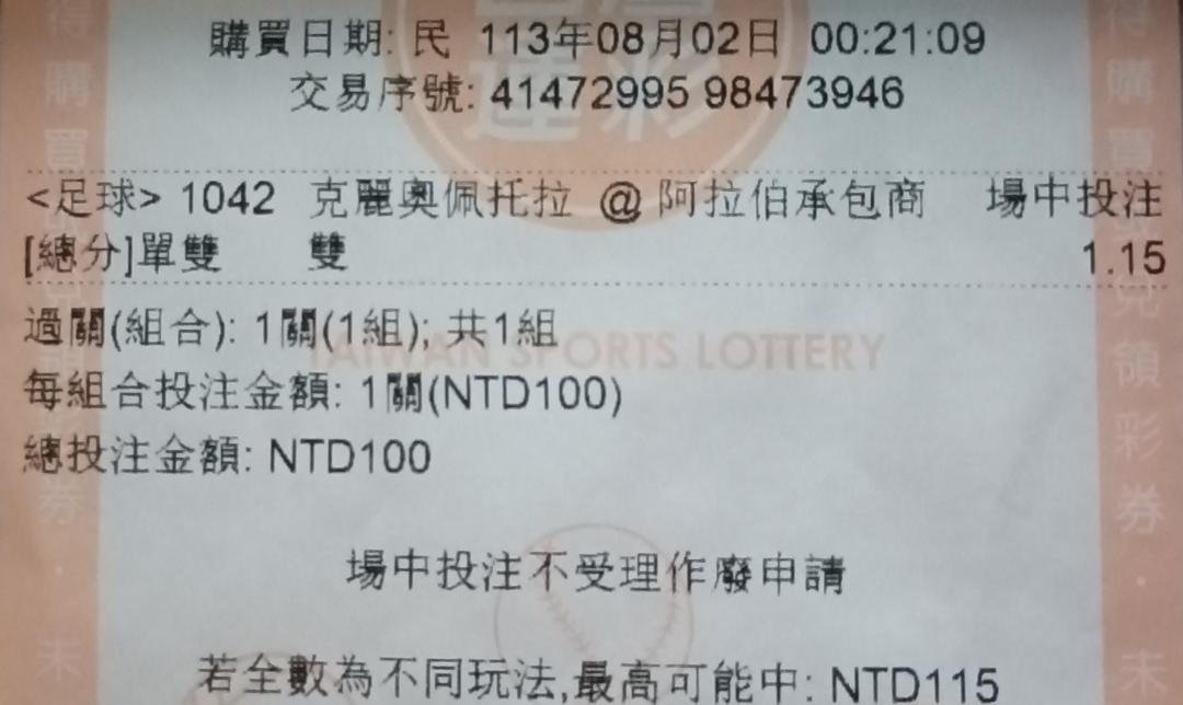 若要選擇亮單文類型 需張貼未開賽投注組合或注單明細