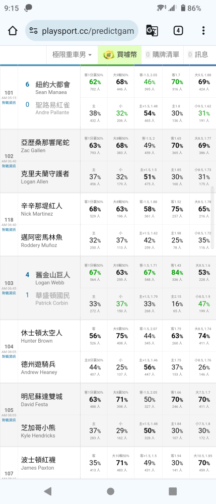 預測賽事