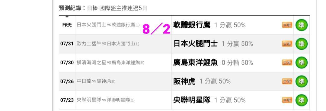 日本職棒 >> 【昨天國際 3過2,主推過關】【國際主推近8過6】99%信心國際主推(貓場)20倍注~有把握全贏