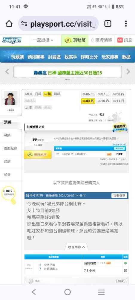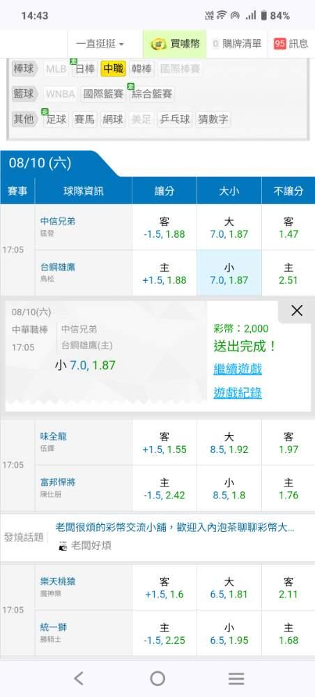 中華職棒 >> 主推連過2天近14過11小叮嚀水噹噹今晚應該只有兄弟台鋼能夠比賽一起領錢!