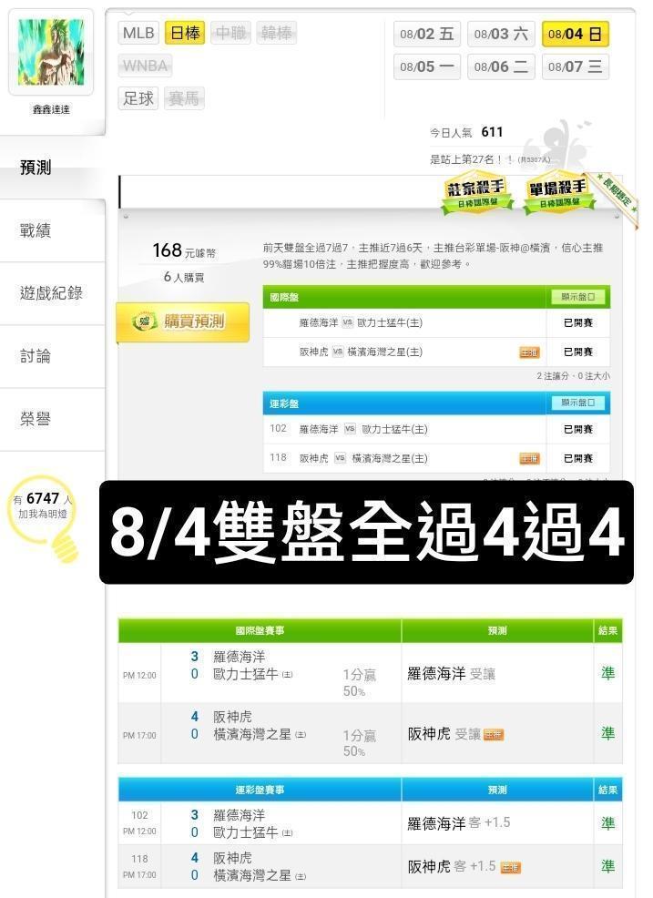 日本職棒 >> ⭐救紅看過來,主推台彩單場-廣島vs阪神,信心主推99%貓場20倍注,主推把握度高,歡迎參考⭐