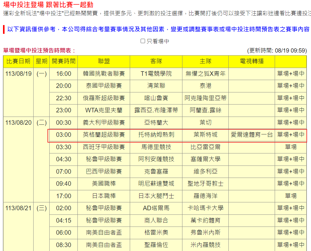 足球 >> 8/20 足球英超運彩單場分享 【主推近16過14】【近23日69過52】特價一日