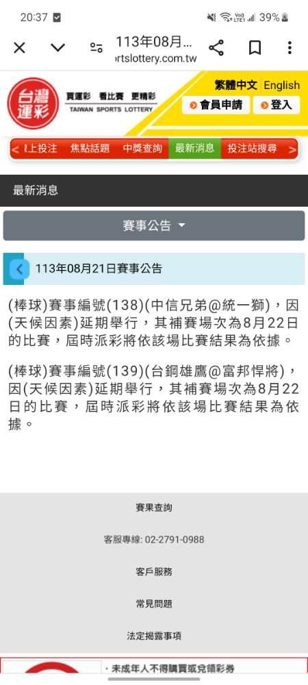 運彩沒退照算8/22比賽才算