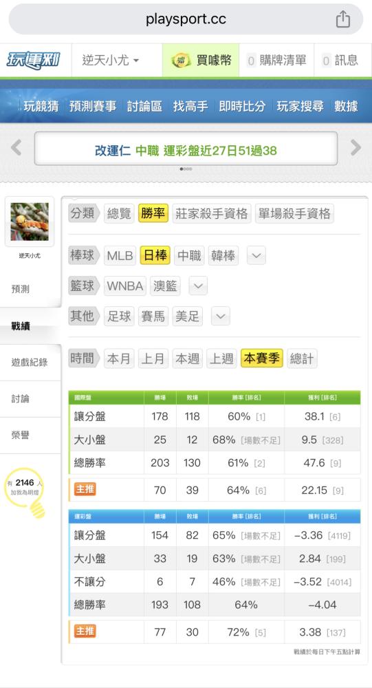 >> 國際近15日40過30!本賽季國際盤讓分盤總勝率第1名、本賽季國際盤總勝率第2名!連續四期莊殺