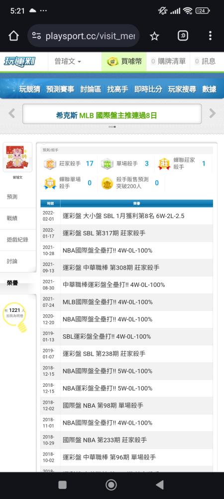 MLB >> 【昨天國際2過2】【國際 連贏5天 主推近5過4】國際主推(貓場)10倍注~有把握全贏