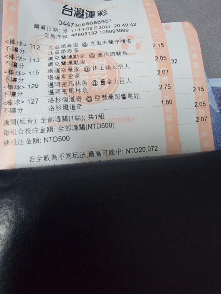 最下面馬林魚跟道奇是快到運彩店才加的。