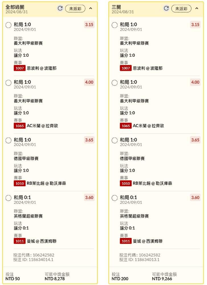 >> 足球半夜場串關分享2單