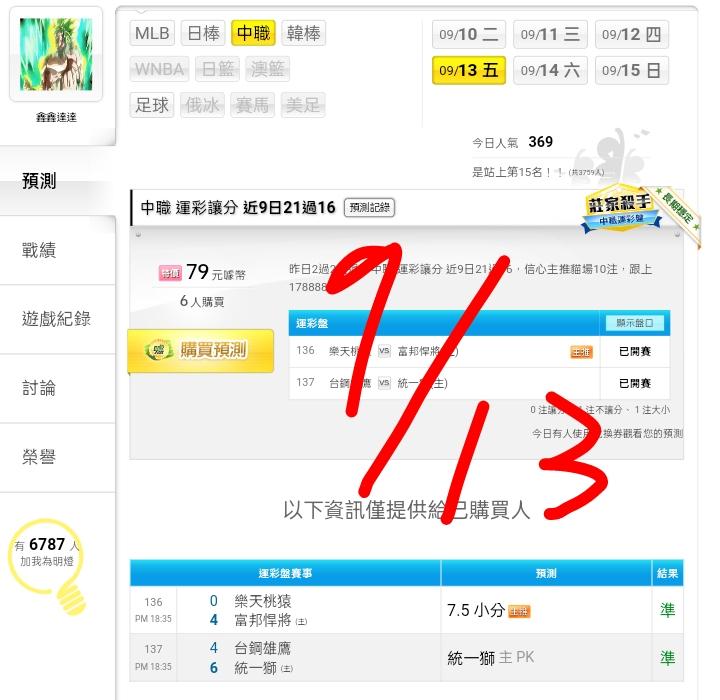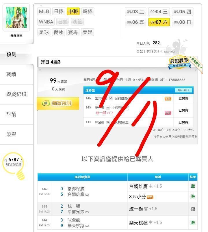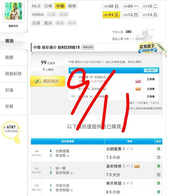 中華職棒 >> ⭐昨日全過主推貓場收,中職運彩讓分近9日21過16,信心主推貓場20注,跟上1788888888⭐