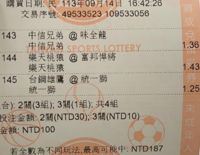 中華職棒 >> 公益單(Part 54) 中信+樂天+統一