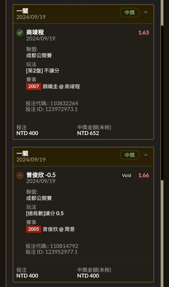 收了。。。一場因該會輸的,預到莊狗欣好在退賽。。。😆