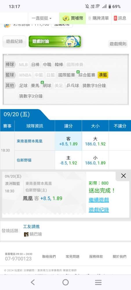 澳洲職籃 >> 今天假日二場比賽昨晚雙盤2過2特價優惠上車一起殺豬頭領錢爽歪歪吧!