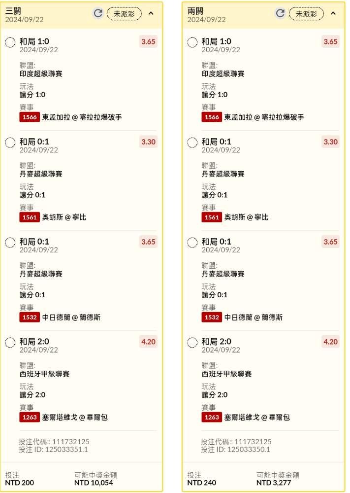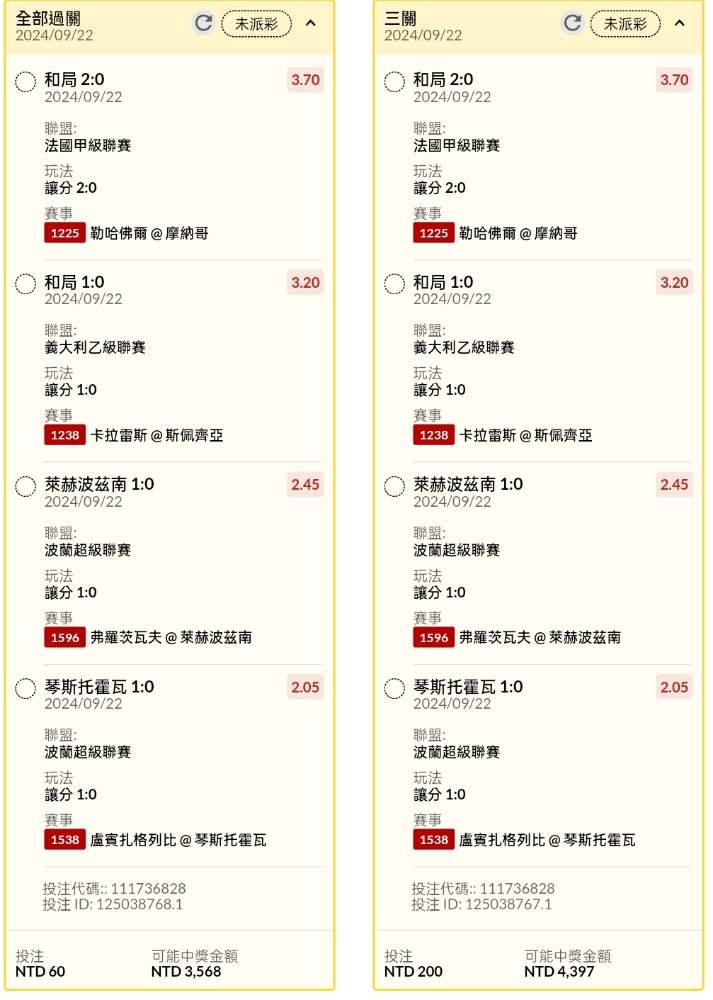 >> 足球晚場讓分試單串關分享2膽(串2、3、4關)
