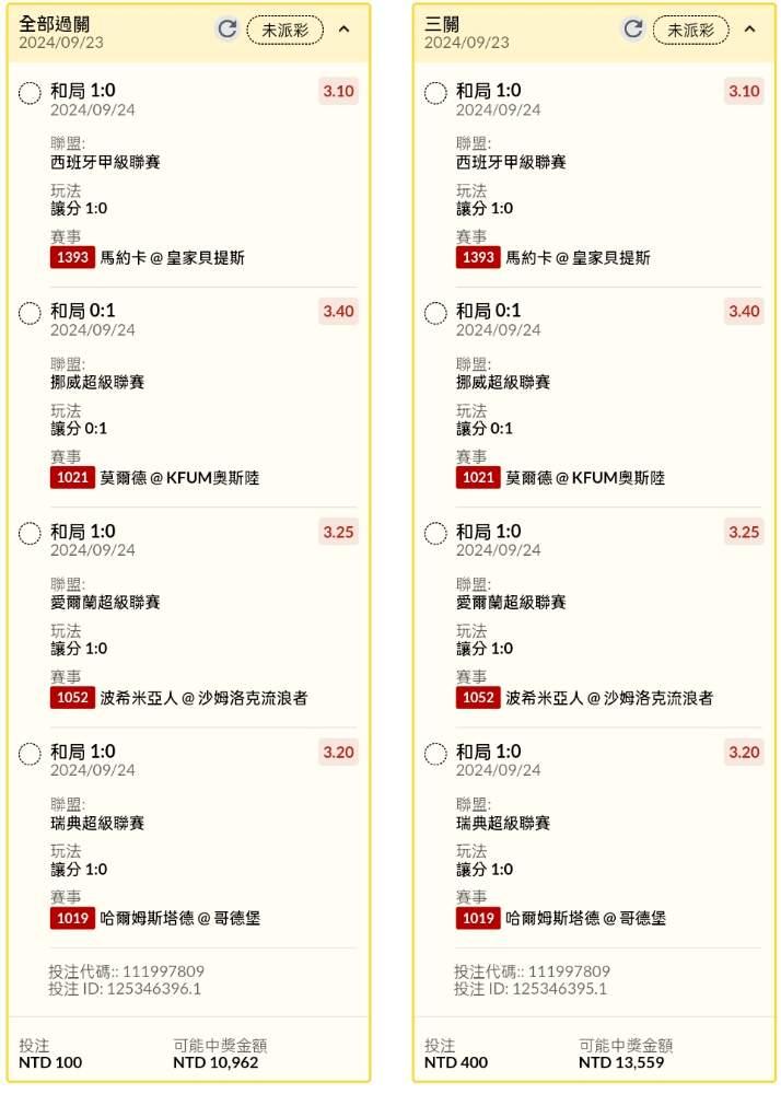 >> 半夜早場讓分串關2單