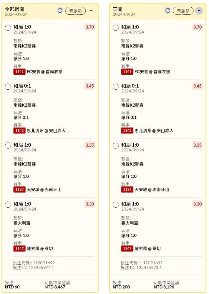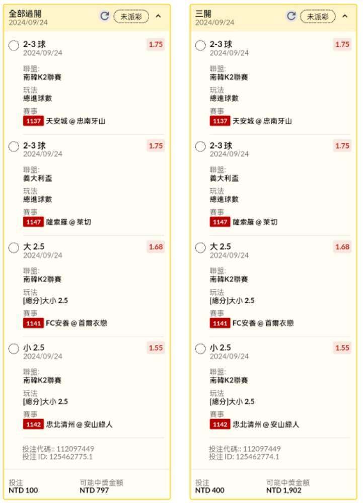 足球 >> 足球波蘭杯、韓國場義大利杯場讓分、大小分總進球串關分享5單